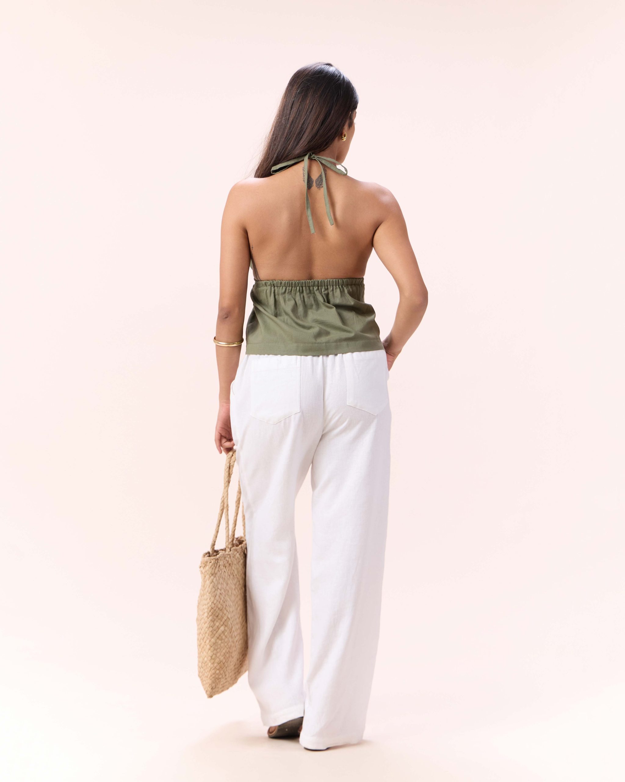 Product name – Swetha top-olive Silhouette- Relaxed Sleeve length – Sleeveless Fabric – Linen Model wears- UK 08